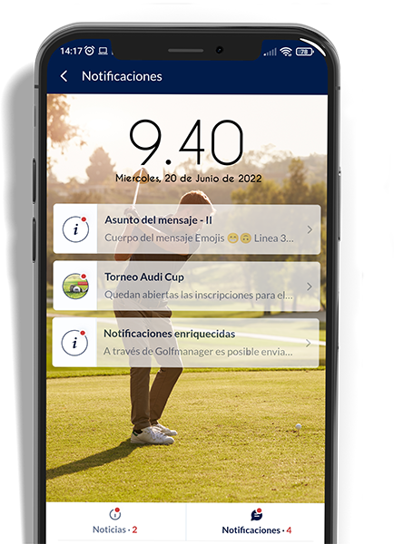 Activa las notificaciones push para estar siempre a la última sobre todo lo que está pasando en el club: novedades, noticias, eventos, torneos etc.